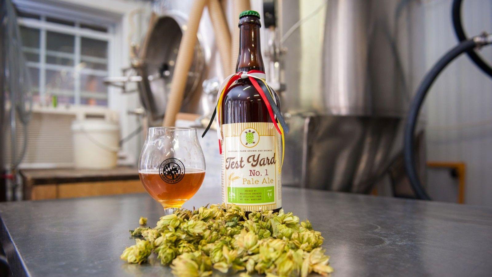 Mt Airy, MD. -- University of Maryland Extension had a very proud moment on Wednesday night as its first ever hop trials were featured in a limited edition rye pale ale, brewed by Milkhouse Brewery, Maryland's first farm brewery located on the outskirts of Frederick. In the words of Tom Barse, Milkhouse Brewery owner, "this was the best first-year hop yard I've ever seen." From 4-6 pm, local brewers, hop producers, state legislators, University of Maryland employees and other special invitees mingled on the Milkhouse property in celebration of Extension's successful effort, one that will lay the groundwork for future research-based work with hops.
