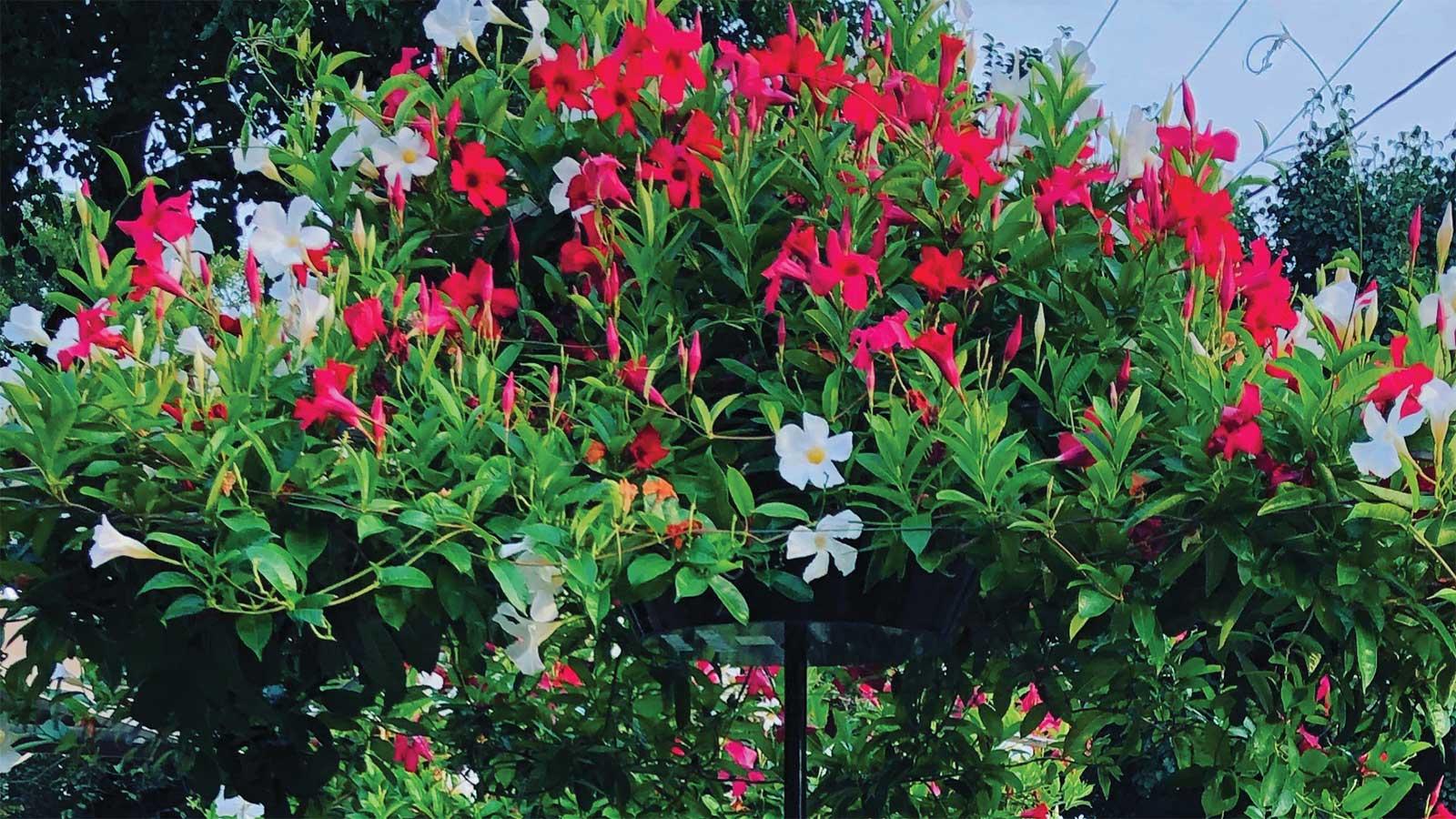 It is an impressive concept, one that any homeowner could easily establish as a permanent fixture on their deck, terrace, or patio. Tilley and former student and co-founder Nick Cloyd (AGNR ENST BS ‘11, MS ‘17) seem to have bet big on their design and engineering. The real genius and innovation lies with the shade component, featuring a flexible metal trellis on top of an umbrella canopy interlaced with living plants and a solar-powered, automated irrigation system. Their preferred plant is the Sun Parasol giant mandevilla, a flowering vine native to the tropics of Brazil, that has been bred into multiple varieties and flower colors. The canopy is attached to lightweight fiberglass arms and a heavy-duty aluminum pole that is anchored to the patio with a sand-filled base. Everything can be shipped in one box and does not require any tools to assemble. If you operate a commercial business, you can get your hands on a Living Umbrella that features solar powered irrigation.