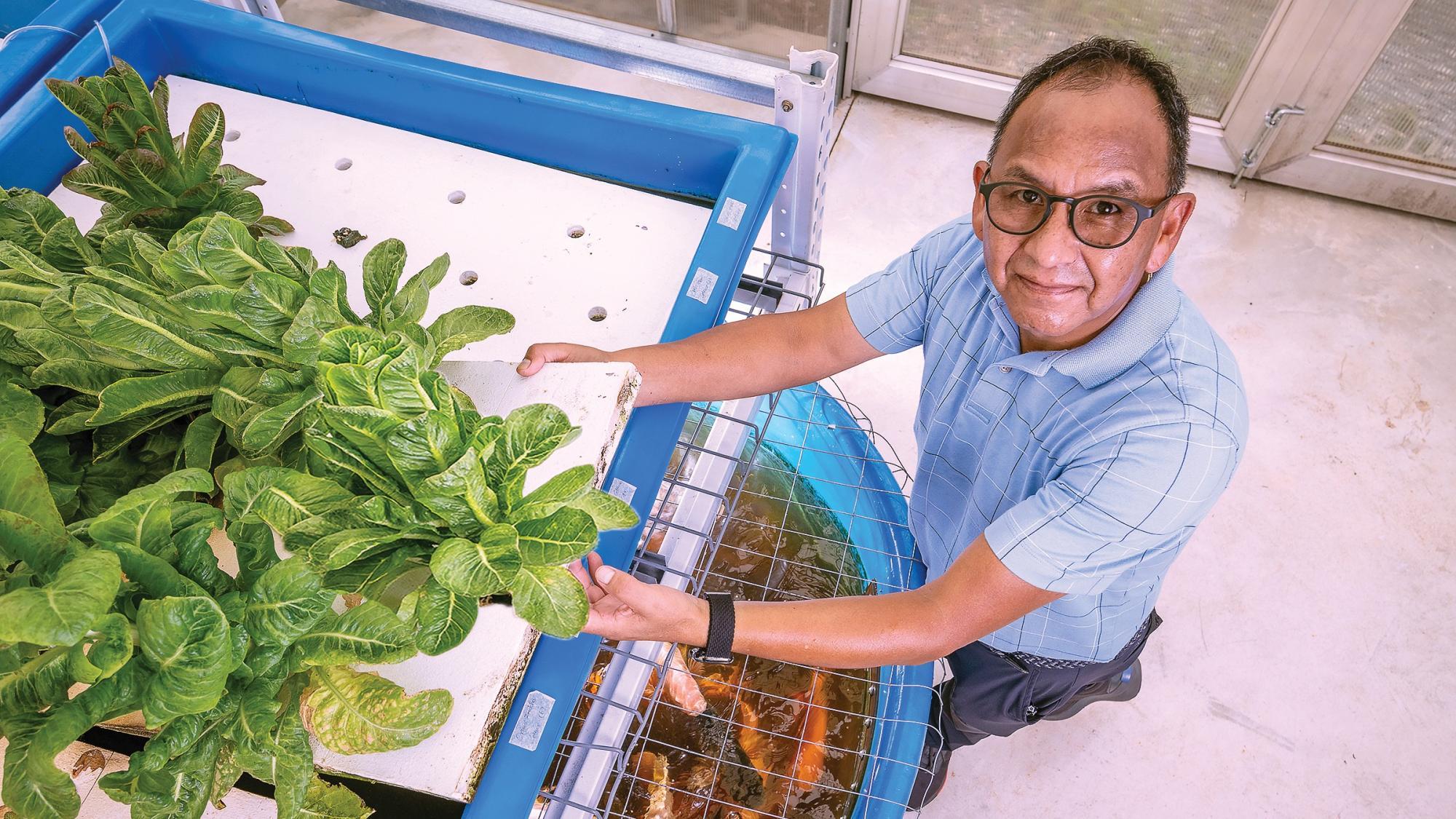 With his tendency to become invested in community, it’s not surprising that Izursa’s dedication to aquaponics would propel him into a prominent role in the global Aquaponics Society. Through the process of building out the greenhouse facility, he has developed a network of colleagues in academia and private industry, and this September, he will welcome them to the UMD campus as the host of the 2025 annual meeting.
