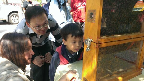A young boy watches the busy bees at the BUMBA booth during Maryland Day.