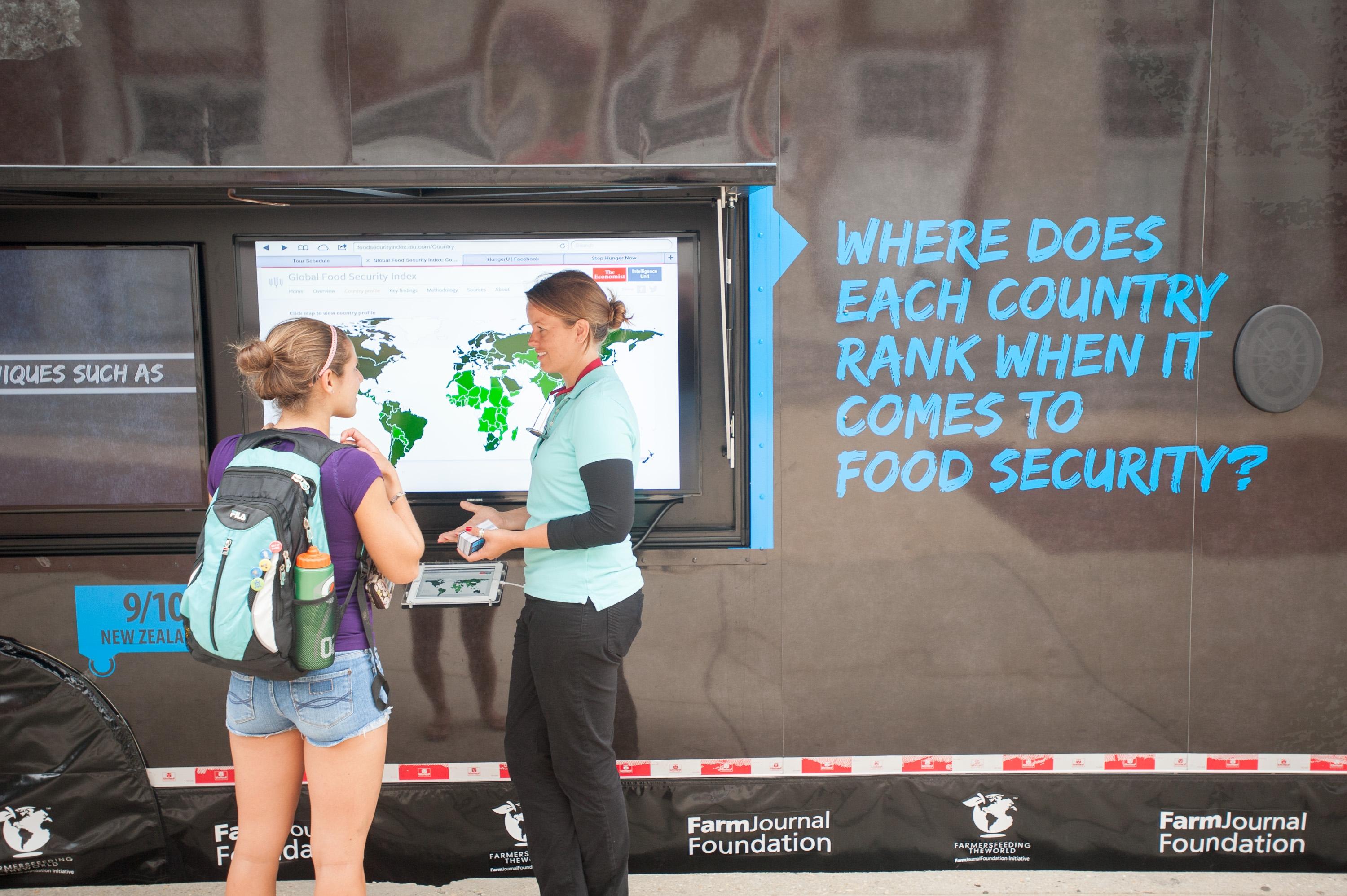 The HungerU Tour is a mobile classroom with interactive displays that travels to college campuses to educate students about global hunger and agriculture. The project is part of the Farm Journal Foundation’s Farmers Feeding the World campaign and made its debut on this campus yesterday through a partnership with the agricultural college.