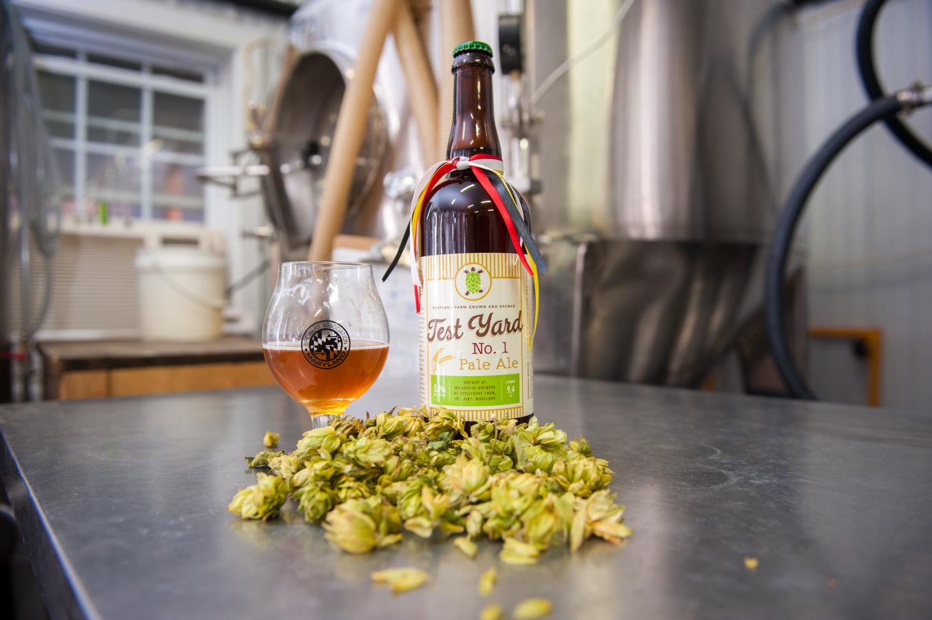 Mt Airy, MD. -- University of Maryland Extension had a very proud moment on Wednesday night as its first ever hop trials were featured in a limited edition rye pale ale, brewed by Milkhouse Brewery, Maryland's first farm brewery located on the outskirts of Frederick. In the words of Tom Barse, Milkhouse Brewery owner, "this was the best first-year hop yard I've ever seen." From 4-6 pm, local brewers, hop producers, state legislators, University of Maryland employees and other special invitees mingled on the Milkhouse property in celebration of Extension's successful effort, one that will lay the groundwork for future research-based work with hops.