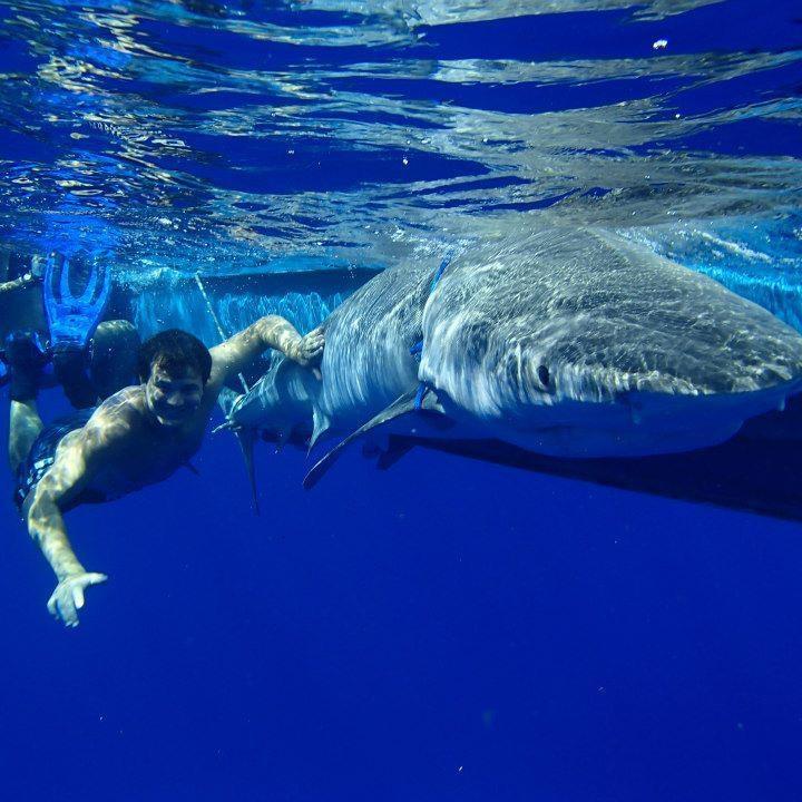 Other notable experiences from his trip include swimming with wild bottle-nosed and wild spotted dolphins, and a free swim with a 13-foot tiger shark. He also got to swim with some bull sharks he helped catch.