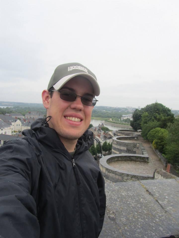 Senior AGST major Tim Von Thun smiles outside the Chateau d'Angers, a castle in Angers, France.