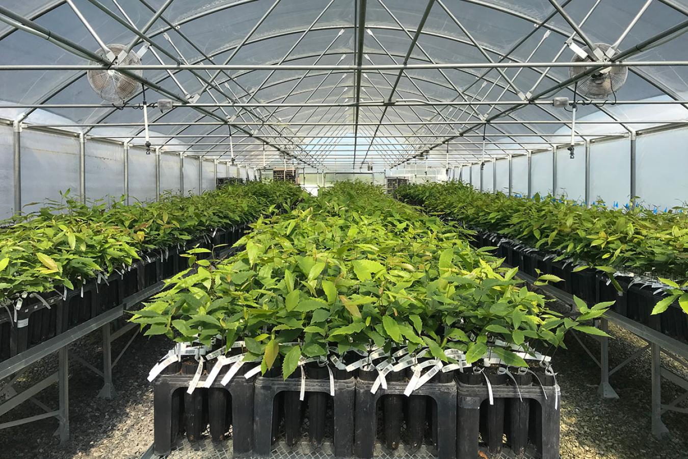 Greenhouse full of chestnut seedlings.