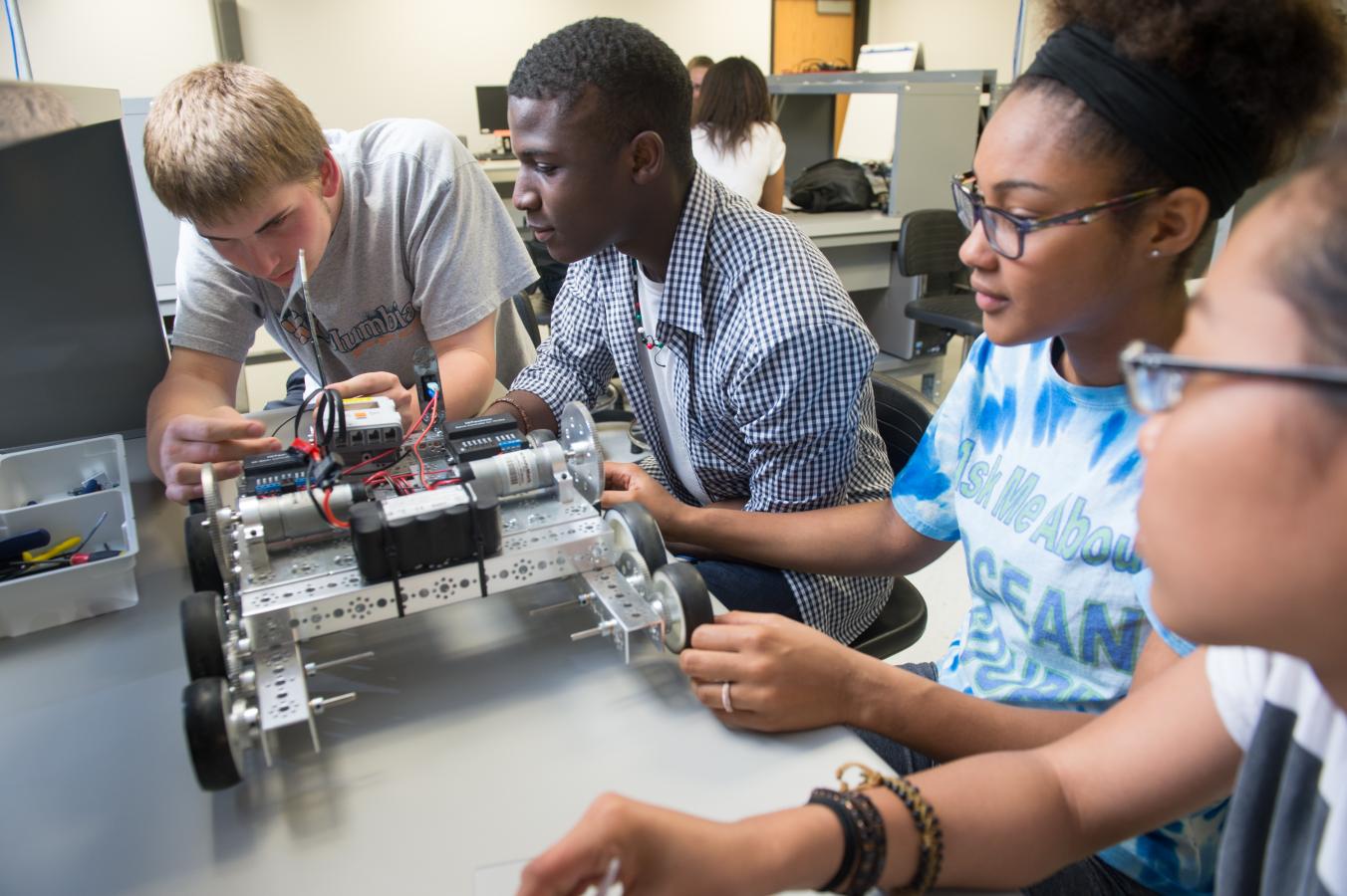 The Garrett Engineering and Robotics Society – better known as GEARS – has a unique facility in the town of Accident that serves as a hub for 4-H clubs in the area. Teens in the Navy STEM camp had a chance to interact with local 4-Hers at the GEARS facility and tried their hands at making and controlling their own robots.