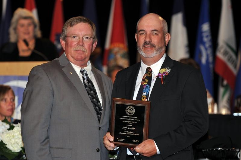 Washington County extension educator Jeff Semler (right) received the Distinguished Service Award from the National Association of County Agricultural Agents (NACAA). NACAA President Paul Wigley of Georgia is pictured on the left.
