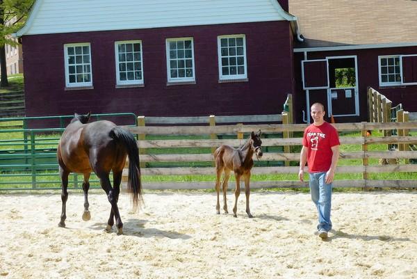 Steve Moirano shows off mare Amazin', and her two-week-old foal, Tessie, to a crowd of onlookers at the UMD Campus Farm at Ag Day/Maryland Day 2013.