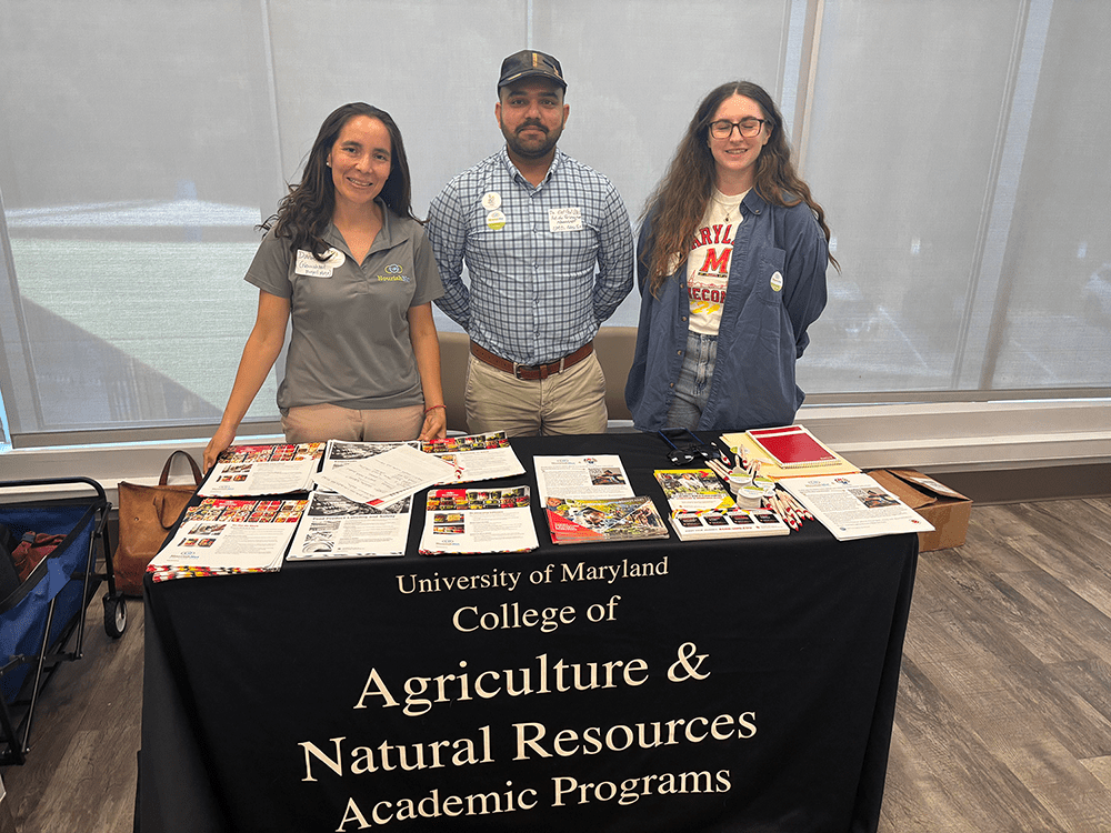 Dr. Eid Gul, Daniela Ochoa Gonzalez and Nicole Fisher engage with community visitors at the PG County Community Garden Summit