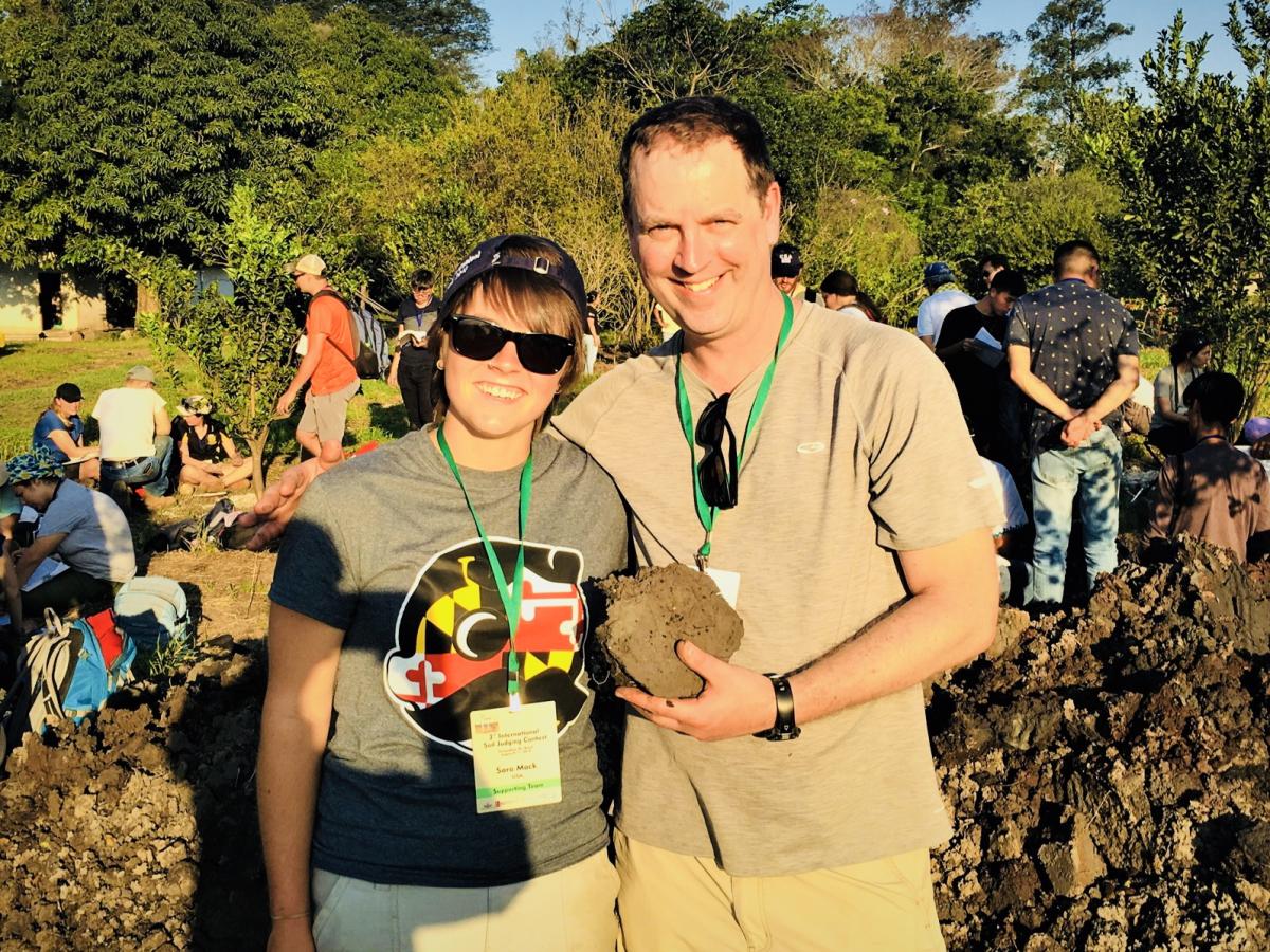 Team USA took first place in the Third International Soil Judging Contest this August in Brazil, with UMD coaches front and center to help lead the team to victory. Taking place every four years in true Olympic fashion, the competition was hosted by the Federal Rural University of Rio de Janeiro and the Brazilian Soil Science Society. UMD placed in the final four this year at the USA National Soil Judging Competition, prompting an invitation for Associate Professor Brian Needelman of the UMD Department of Environmental Science and Technology to join qualifying coaches Andrew Sherfy of the University of Tennessee-Knoxville and John Galbraith of Virginia Tech at the international contest. Needelman served as associate coach, contest organizer, and instructor. Sara Mack, MS from the same department at UMD, and Erin Bush, MS from Kansas State University, both represented team USA as assistant coaches and contest volunteers. These select coaches came from only four different US academic institutions, showcasing UMD’s leadership in the field of soil science.