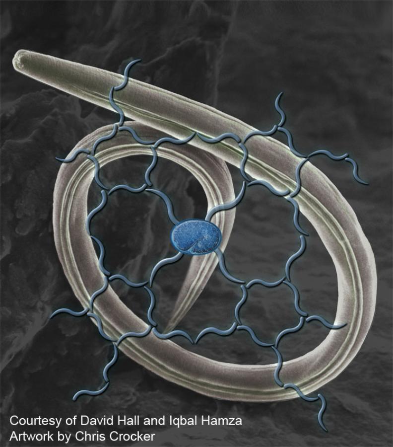 According to Hamza and his colleagues, these “bloodless worms” have multiple benefits for studying heme communication and transport. These include the ability to control heme ingestion, to manipulate both intracellular heme levels and gene expression of transporter and signaling proteins. And, because the skin of C. elegans is transparent, use of fluorescent tracers and microscopes allows researchers to monitor heme levels, heme transport and heme signaling throughout an entire live animal.