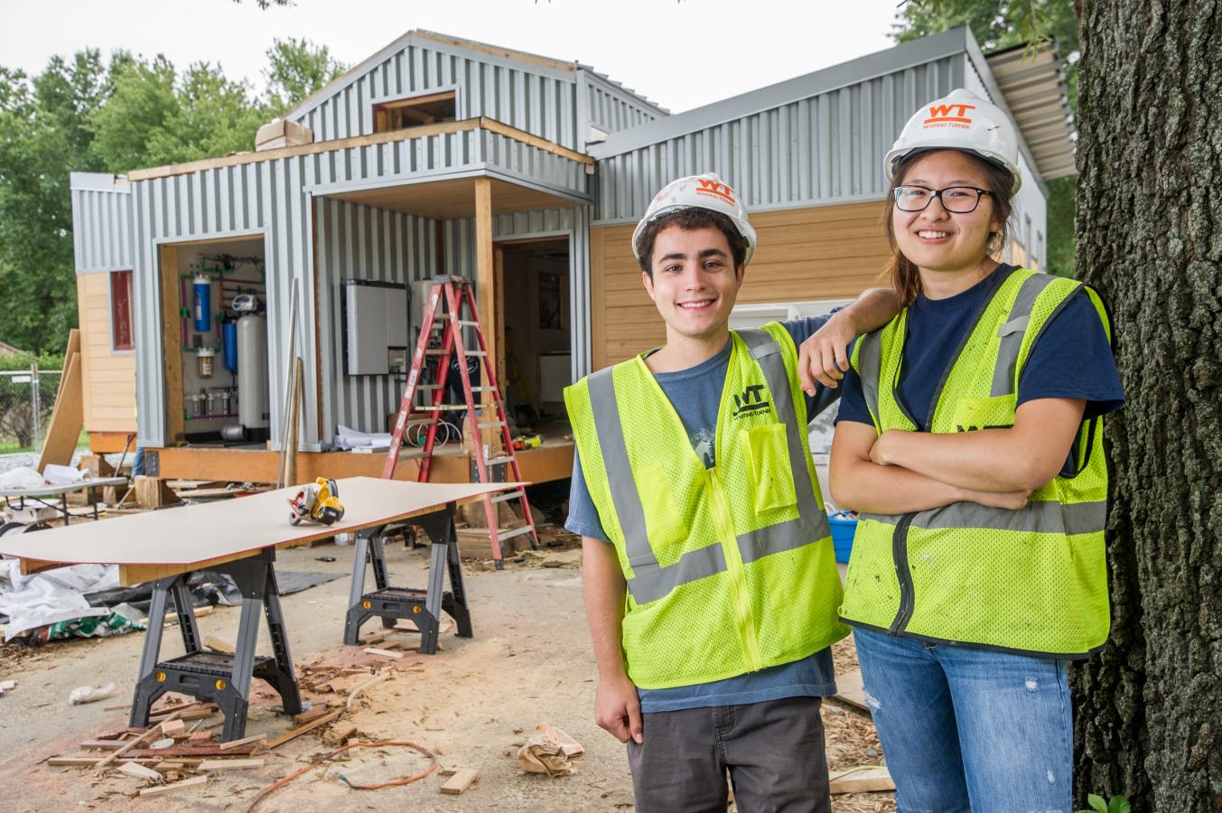 UMD Solar Decathalon house construction with ENST Students Matt Lagomarsino and Emily Goo