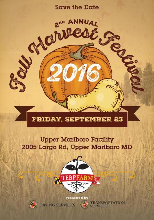 COLLEGE PARK, Md. – The University of Maryland will host the 2nd annual Terp Farm Fall Harvest Festival on Friday, September 23, 2016 at Terp Farm, a collaborative project between UMD Dining Services, the College of Agriculture & Natural Resources and the Office of Sustainability.