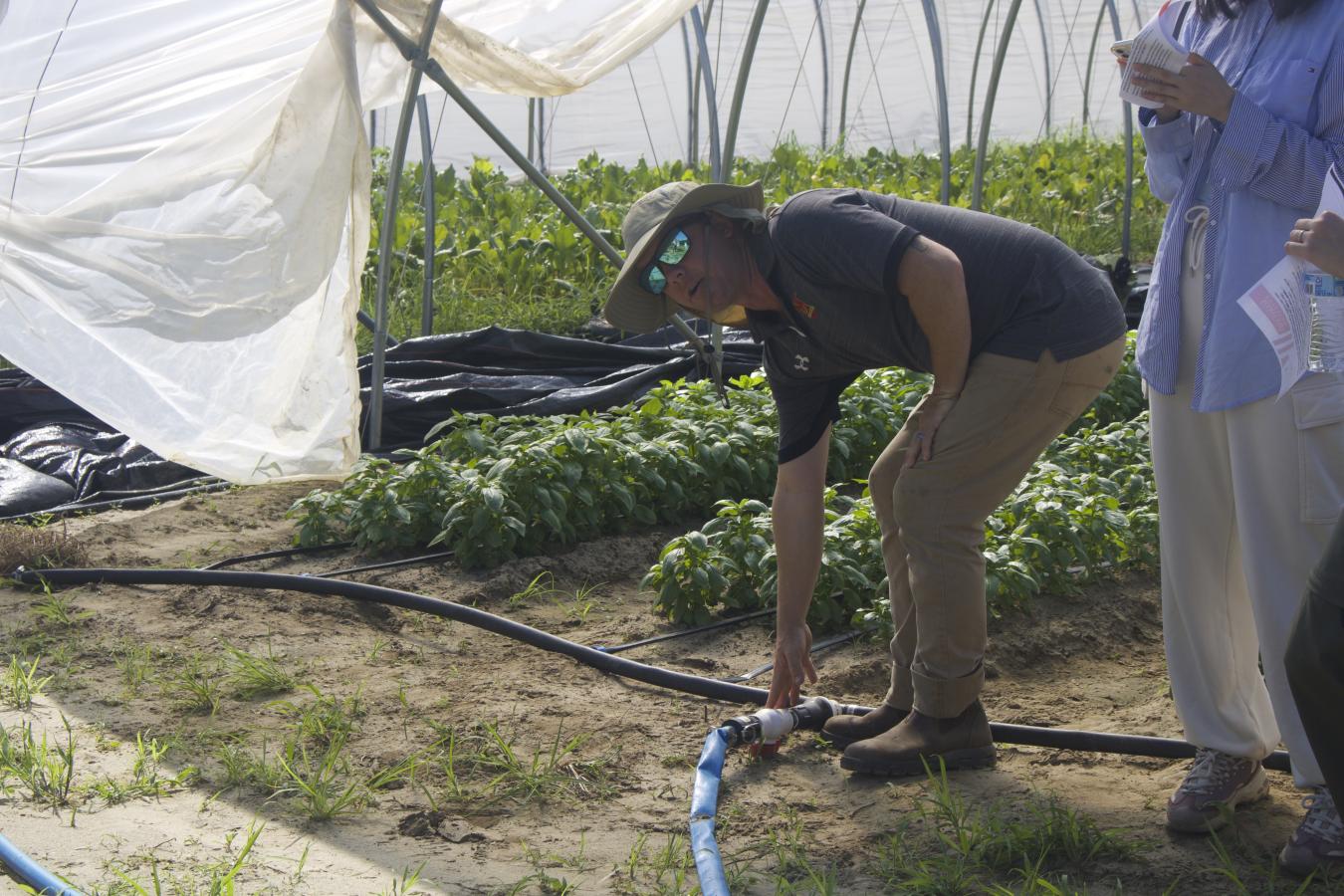 The training participants got a hands-on view of the existing rainwater collection systems and irrigation systems on the Terp Farm that were used in the project, as well as information on what was used in their water treatment and filtering processes. They also got to practice installing drip irrigation and watch a demonstration of a collection system from a rooftop.