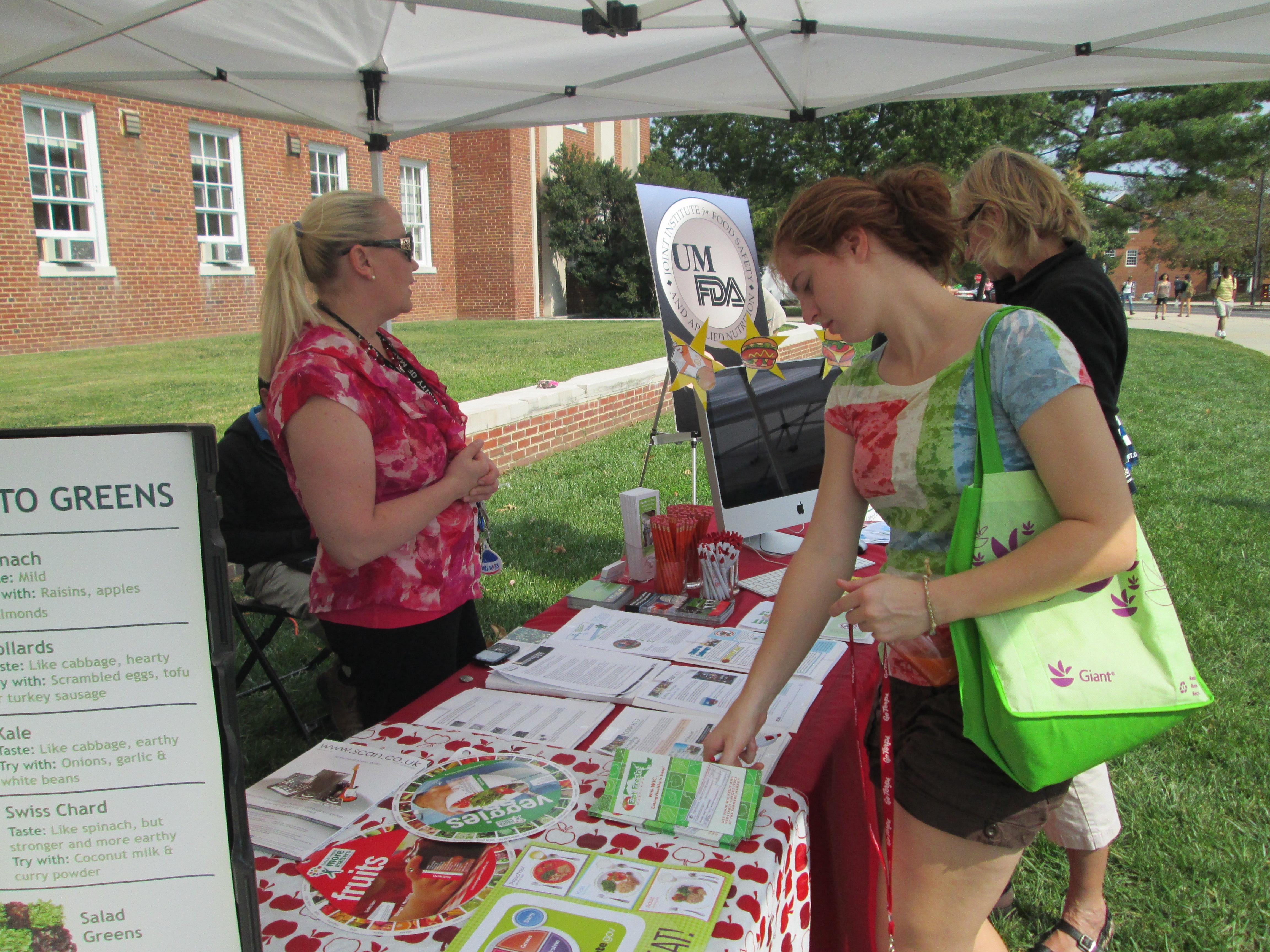 The Joint Institute for Food Safety and Applied Nutrition (JIFSAN) provides food safety information at the Farmers' Market at Maryland.