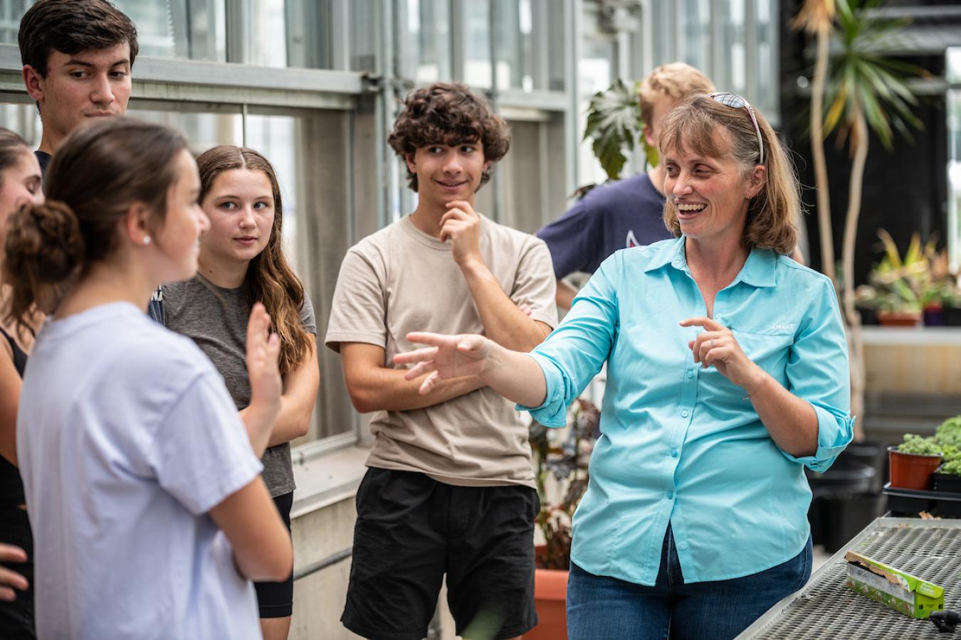 Stephanie Yarwood teaching in the research greenhouse.
