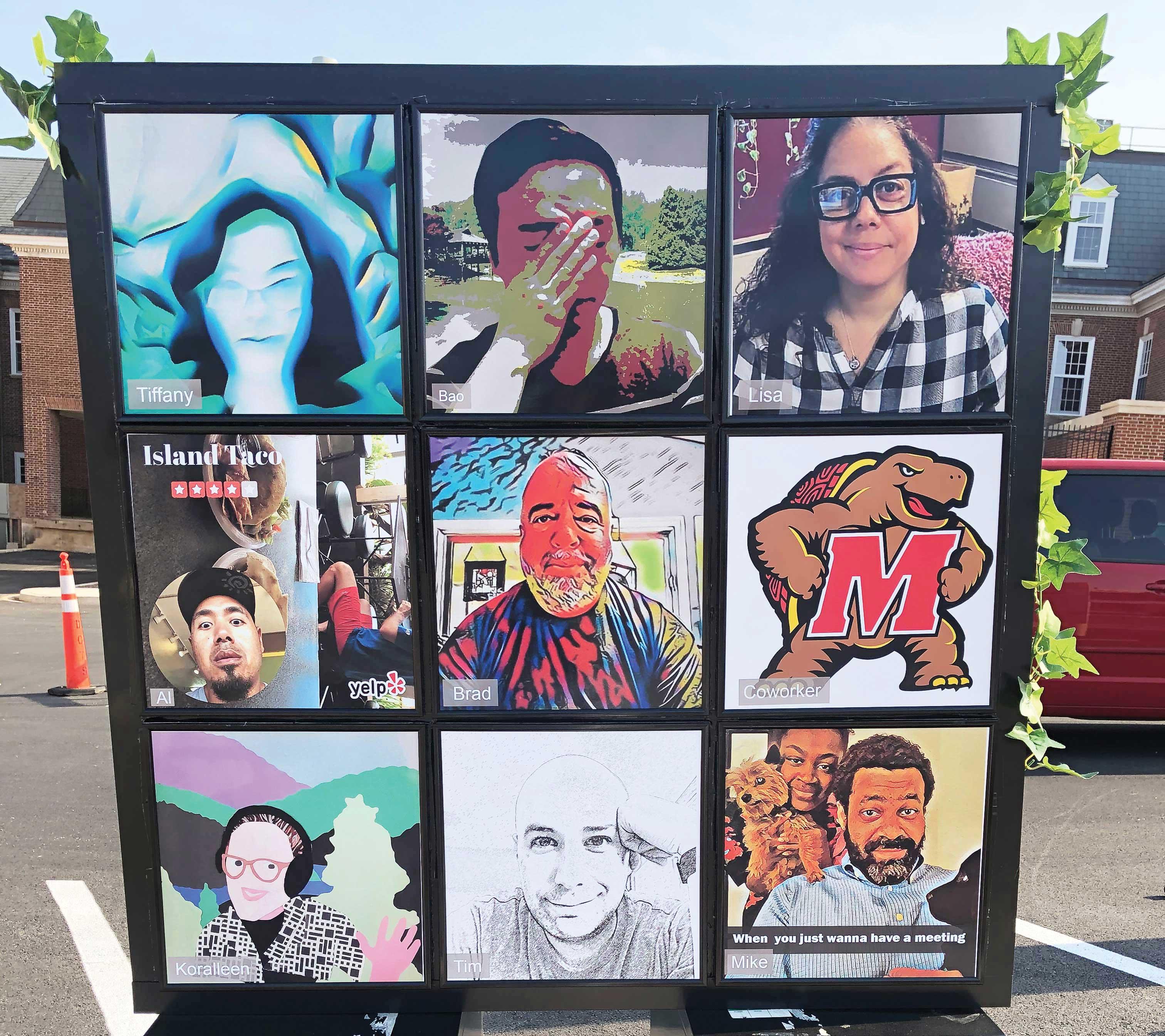 Our Information & Education Technology (IET) staff contributed this innovative installation, entitled "Zoom Happy Hour," to the UMD Department of Transportation Services (DOTS) Art Park. This spring, our reduced campus density left a surplus of empty parking. DOTS therefore decided to launch the Art Park initiative, lending parking spaces to programs seeking a venue for outdoor art installations.
