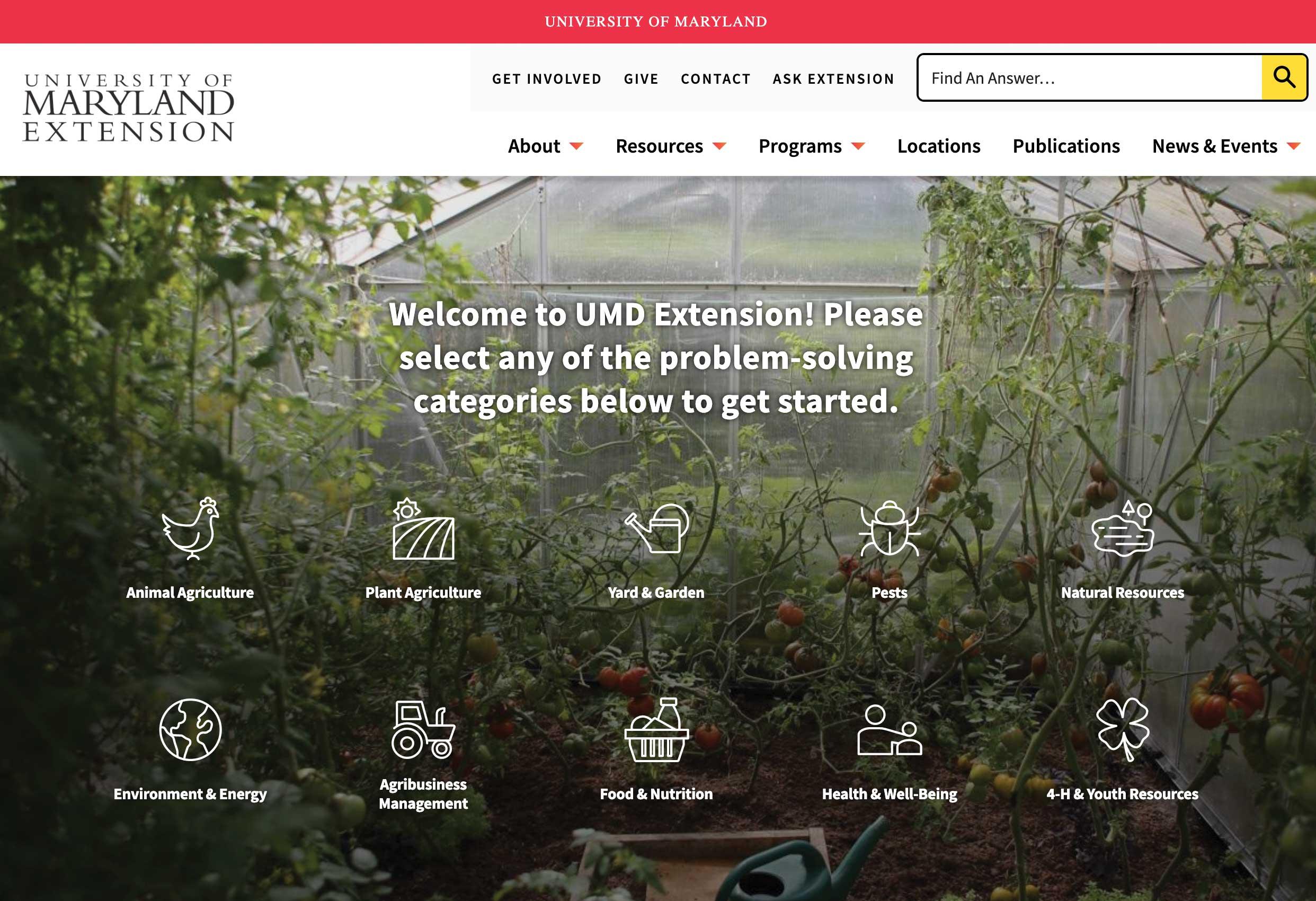 This spring, AGNR launched a new public face for UMD Extension (UME) with a brand new website. The upgrade represents over two years of discussion, stakeholder engagement, design, and development, prioritizing the public user experience.